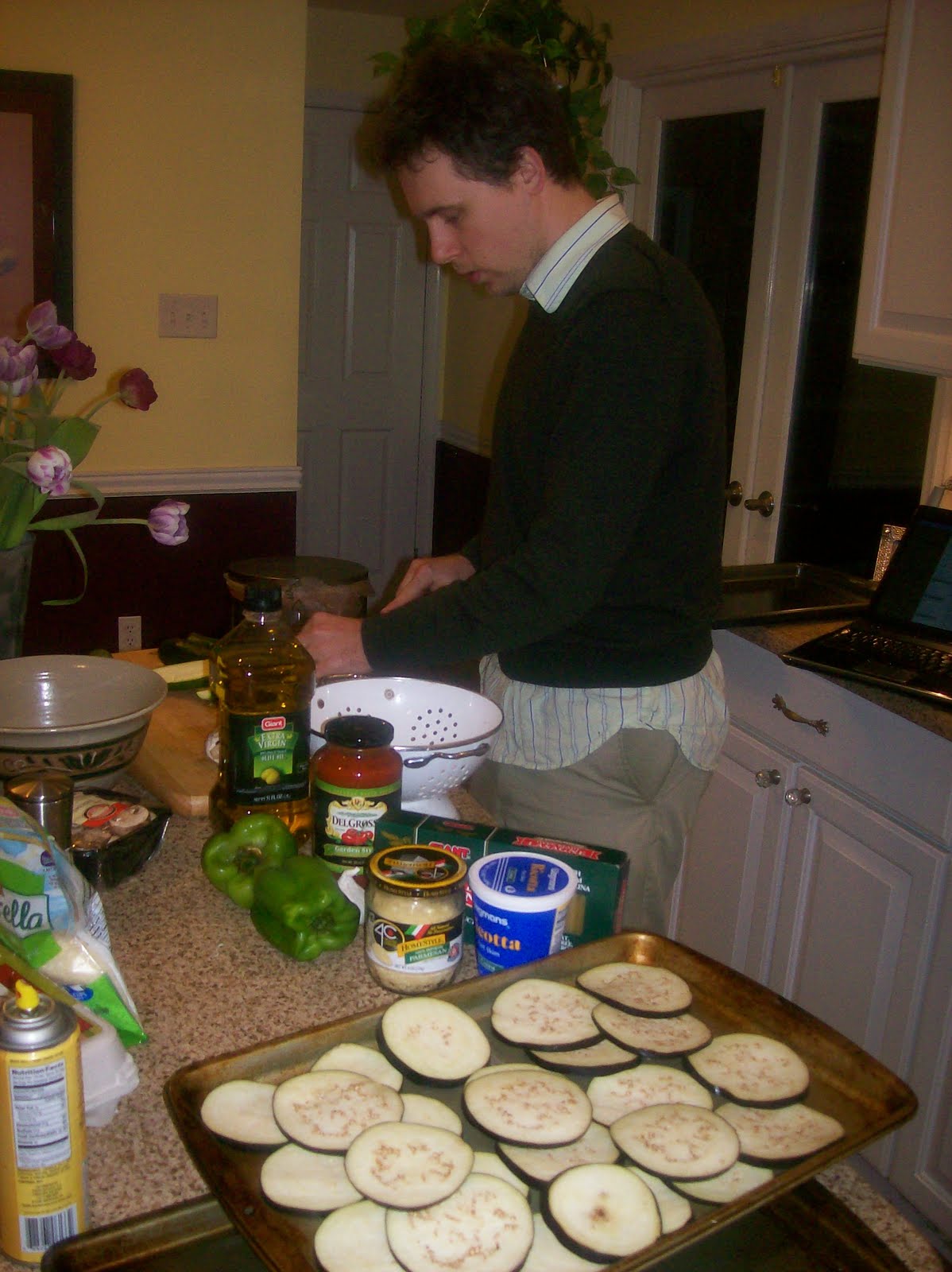 Eggplant after roasting a bit. Look at them laying out like that. So relaxed.